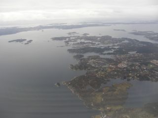 10時50分の便でフランクフルト発。ルフトハンザインターシティの運航便でした。2列2列の座席配列で、通路側でしたが、運良く、隣がいなくて、2時間程度の飛行の間、ベルゲンに近づいた時、空からフィヨルドが見え始めました。
