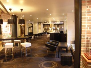 部屋は比較的狭い感じ。水、歯ブラシ、足ふきタオル、セーフティーボックスなどがなかったです。ドアはものすごく硬く、体重をかけて開けました。右下はロビーすぐのバーです。