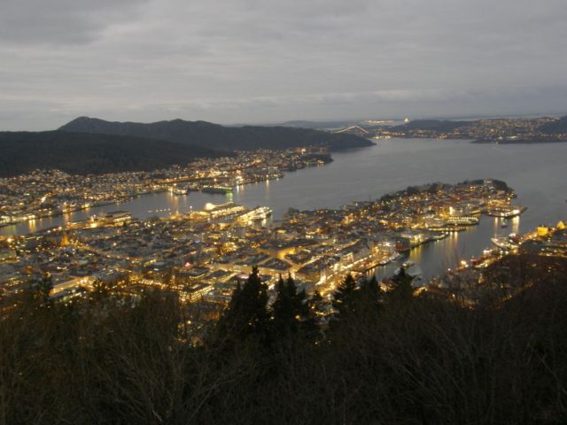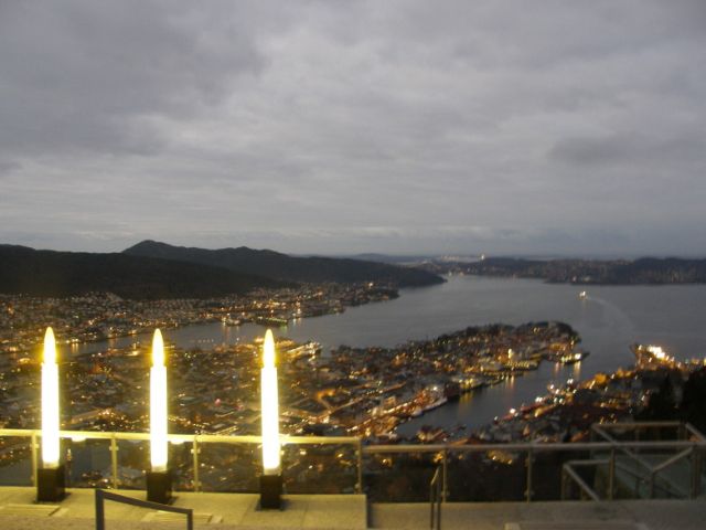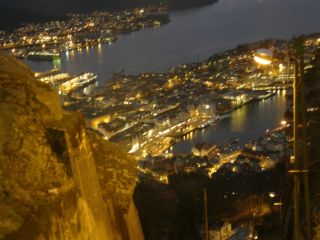 買い物や街歩きに夢中で、少し遅くなってからフロイエン山へ向かいます。ケーブルカーで往復70NOK。