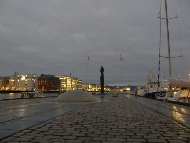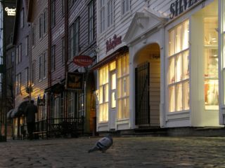 07:42 早くもホテルを出発して街歩きを開始。ブリッゲンはまるで夜の景色。