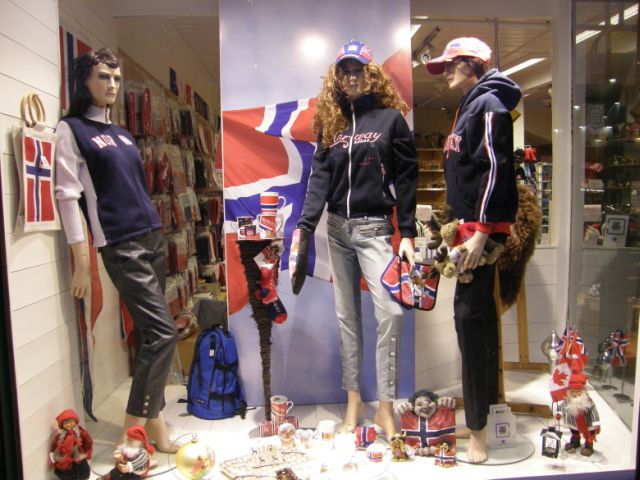 ノルウェーの国旗、スカンジナビアクロスのグッズが沢山。かっこいい国旗なので、前日、少し買い物もしました。