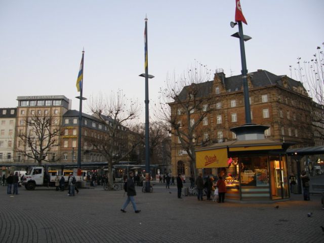 16:30 上の写真のマインツ中央駅を出発してホテルを目指します。ホテルの案内は出ていたけど、意外と見つけにくく、グルグル歩き回ってました。