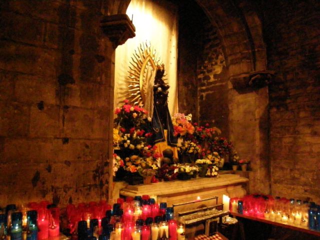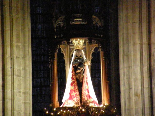 荘厳な雰囲気の教会内を静かに歩きました。祭壇左後方にお目当ての黒いマドンナ像を発見しました。
